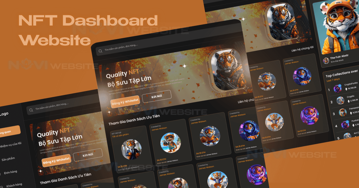 Hiển thị số liệu tổng quan: doanh thu NFT, volume giao dịch, người dùng hoạt động, listing mới.