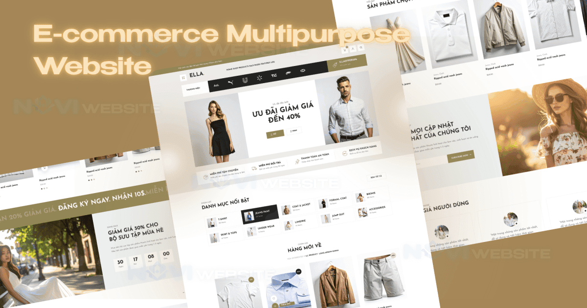 • Phụ kiện (Túi, giày, mắt kính…)Section “Sản phẩm nổi bật”: 4–6 sản phẩm hot, giảm giá hoặc mới ra mắt.